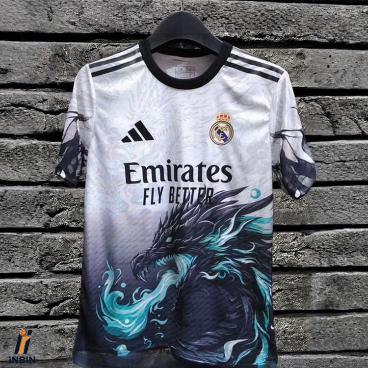 لباس فوتبال کیت رئال طرح دراگون سفید همراه شلوارک