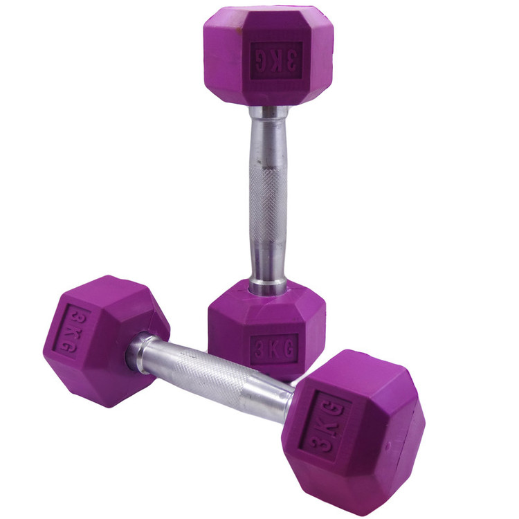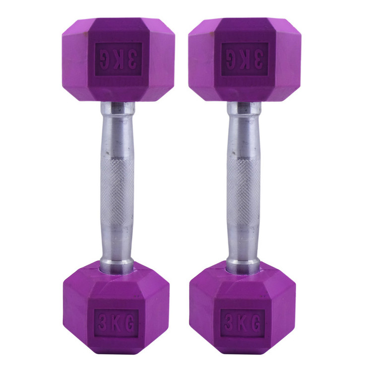دمبل 6 ضلعی معرفی شده در این بخش با وزن کل 6 کیلوگرم (هر کدام 3 کیلوگرم) از وزنه چدنی در طرفین و میله وسط آهنی با روکش نقره ساخته شده است. بر روی وزنه چدنی روکش لاستیکی نرم قرار گرفته است.