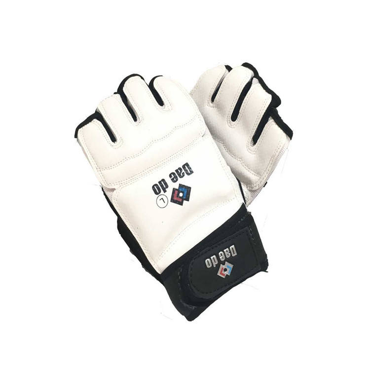 این دستکش دارای مچبند است به شکلی که در انتهای دستکش یک چسب پهن جهت ثابت نگه داشتن آن دور مچ وجود دارد. این دستکش برای ورزشهایی مانند تکواندو مناسب است.