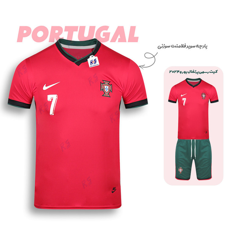 ست سه تکه لباس ورزشی پسرانه طرح تیم ملی پرتغال مدل رونالدو 2024- تولید ایران