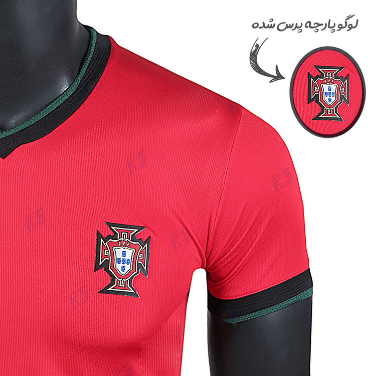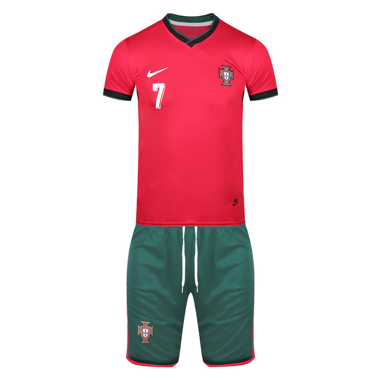 ست تی شرت و شلوارک ورزشی پسرانه مدل تیم ملی پرتغال رونالدو یورو 2024